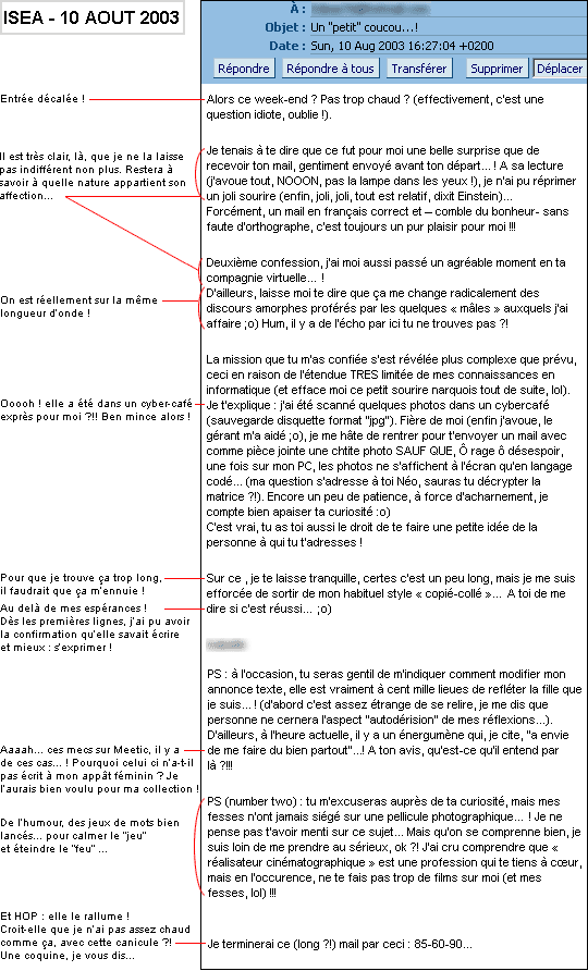 Mes analyses de Mails ou de Chats sont totalement subjectives, elles essaient d’être le compte-rendu de ce que j’ai éprouvé en les découvrant.
