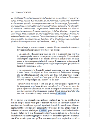 Dans La construction équipée du lien amoureux. Les sites de rencontre et leurs « parcours de confiance » – Johann Chaulet